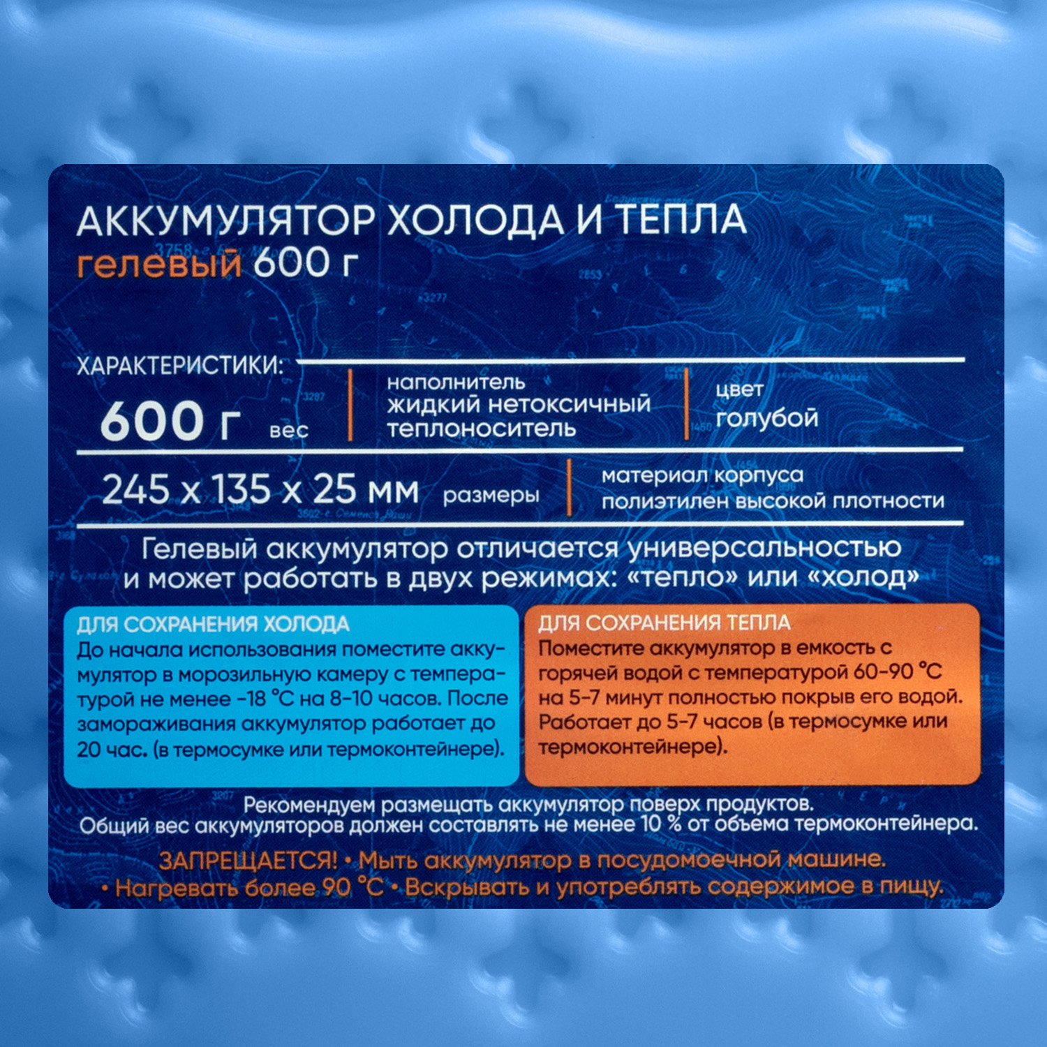 Аккумулятор холода и тепла 245*135 мм. толщ. 25 мм. 600 мл. (до 20 часов) /1/
