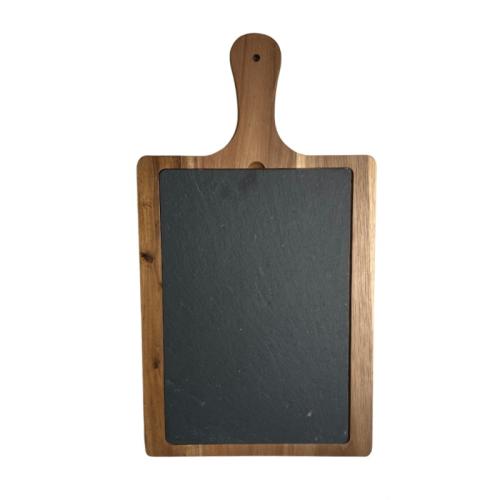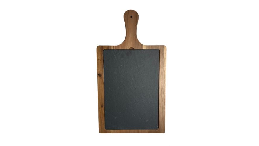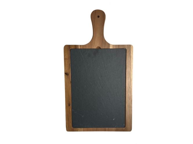 Блюдо для подачи прямоуг. 45*25 см. h=1,4 см. сланец, на дерев. подставке с ручкой MGprof (WB-004) /1/10/