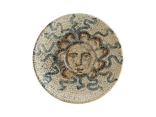 Центральным элементом мозаики на блюдце является символ солнца. Солнце являлось символом жизни, плодородия и божественной силы.