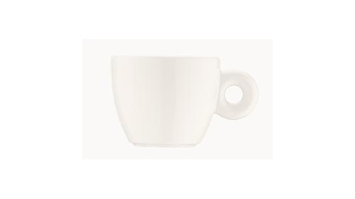 Чашка кофейная белого цвета со сливочным оттенком.