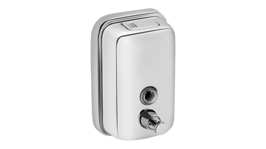 Дозатор оснащен индикатором, что позволяет своевременно отслеживать уровень наполненности дозатора. В верхней части устройства расположен лючок для наполнения мылом."