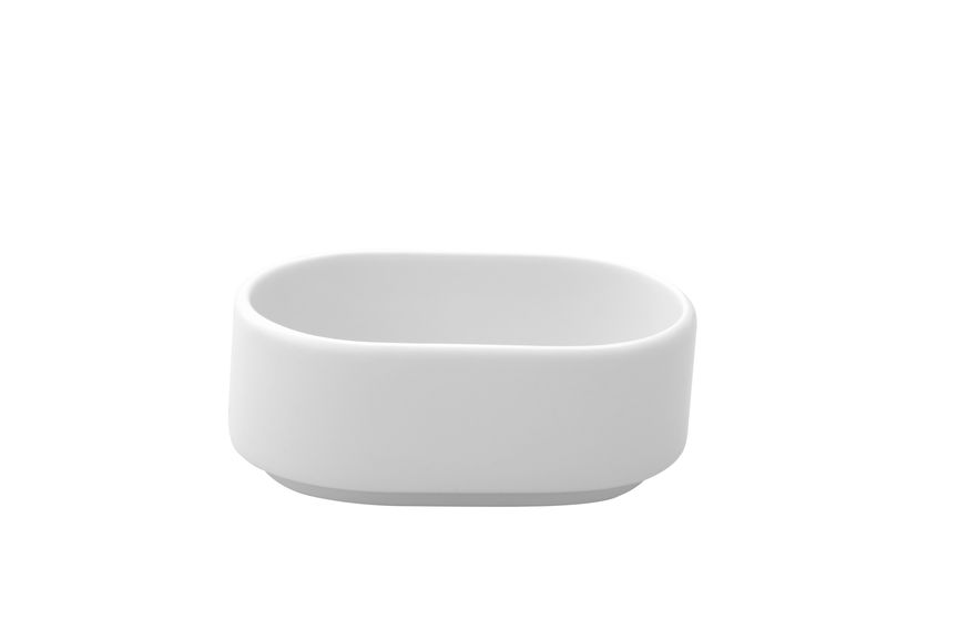 Емкость белого цвета со сливочным оттенком.