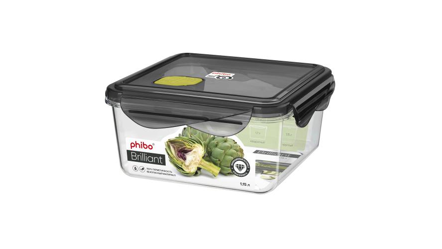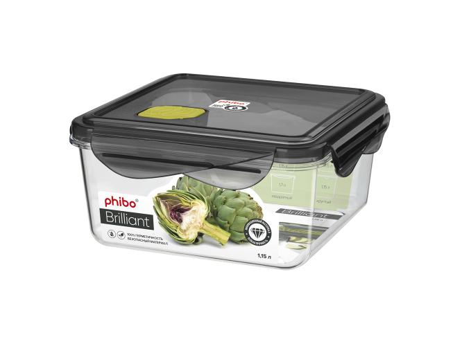 Контейнер для продуктов квадр. 1,15 л. 15*15*7 см. герметичный с клапаном "Бриллиант" /1/12/