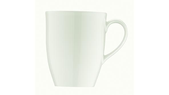 Кружка белого цвета со сливочным оттенком.
