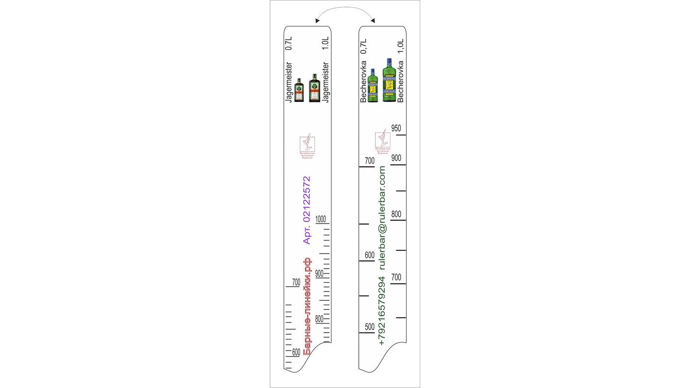 Линейка Becherovka (0.7 л./1 л.)/ Jegermeister (0.7 л./1 л.) L=28 см. В=2 см. /1/