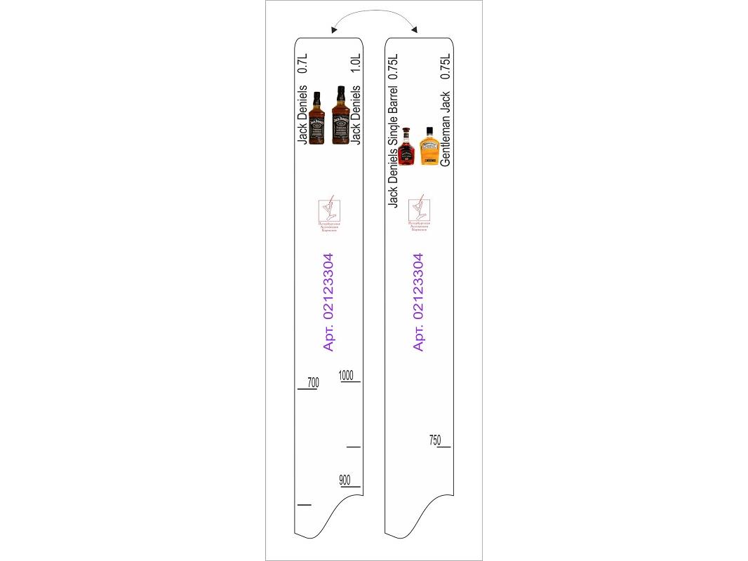 Линейка Jeck Deniels (0.7л./1л.)/Single Barrel (0.75л.)/Gentleman Jack (0.75л.) L=28 см. В=2 см. /1/