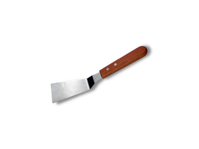 Рабочая часть металлической лопатки довольно жесткая, поэтому не подходит к посуде с антипригарным покрытием.