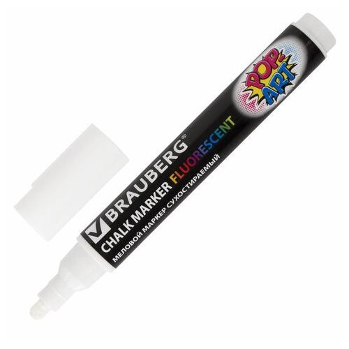 Меловой маркер Brauberg белый с толщиной линии до 5 мм.