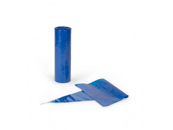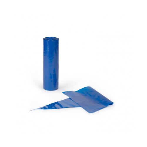 Рулон одноразовых мешков 100шт, трехслойный прочный пластик 70мк, материал с мягкой структурой, нескользящая поверхность, хорошо заметный синий цвет, конусная симметричная форма .Упаковка - пластиковый пакет, кратность 6 рулонов в упаковке