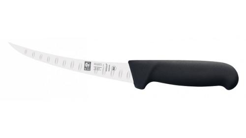 Нож обвалочный 150/290 мм. изогнутый, полугибкое лезвие, с бороздками, черный SAFE Icel /1/6/