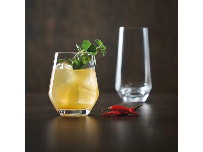 Стаканы с плотным основанием, на которых свет играет в игру отражения: стаканы-многогранники из коллекции Lima прекрасно сочетаются с современными угловатыми формами бокалов на ножке Cabernet Vins Jeunes.