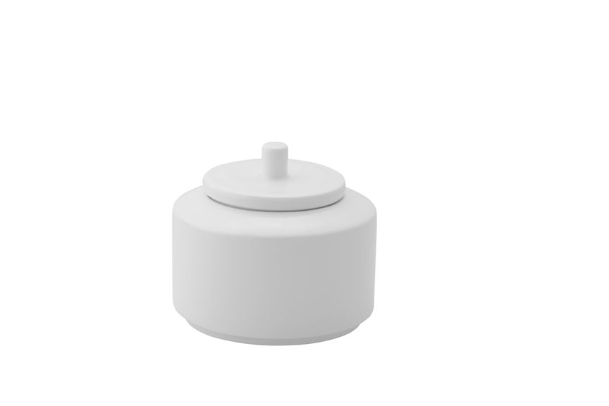 Сахарница белого цвета со сливочным оттенком.