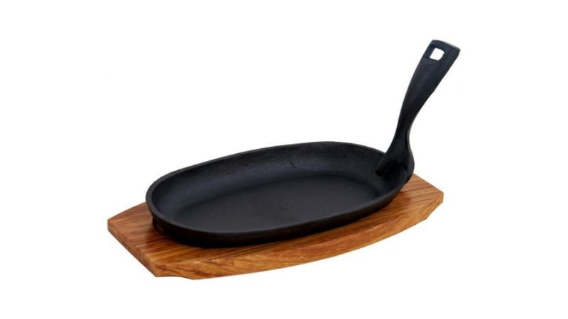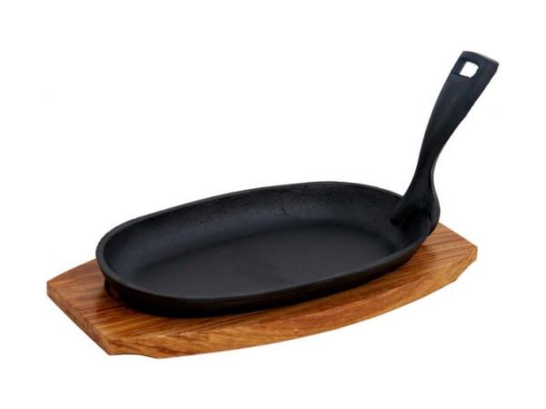 Сковорода 22,5*12,5 см. h=4 см. 0,42 л. чугун. съемная ручка на дерев. подставке /1/12/