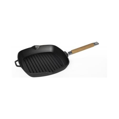 Сковорода-гриль 26*26 см. h=4,5 см. 1,7 л. чугун. рифлен. со съемн дерев. ручкой /1/4/
