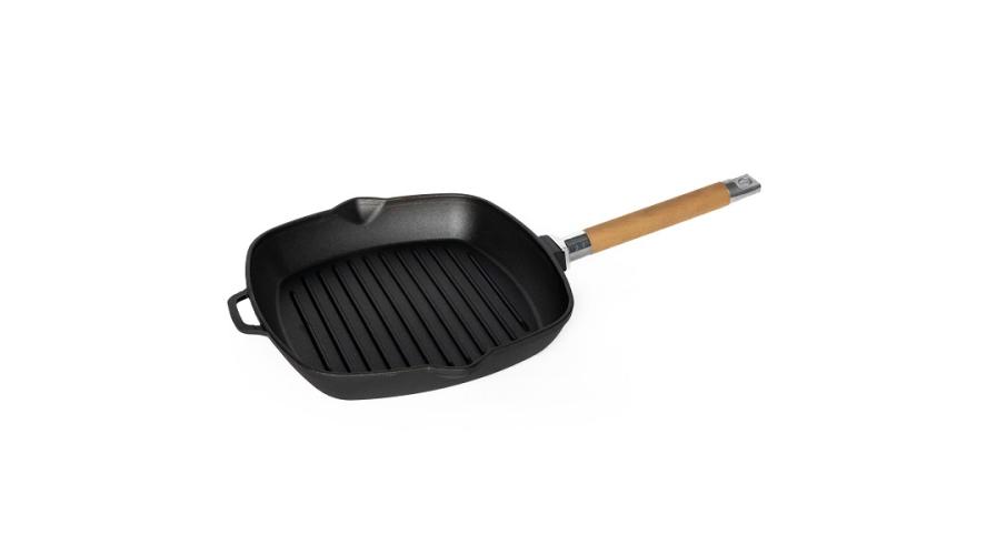 Сковорода-гриль 28*28 см. h=4,5 см. чугун. рифлен. со съемн дерев. ручкой /1/