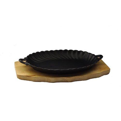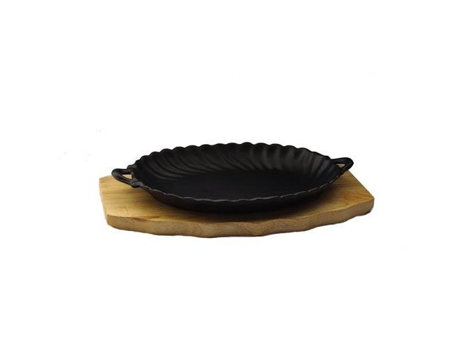 Сковорода порц. 24,5*17 см. чугун. овальная с 2 ручками на дерев. подставке /1/5/