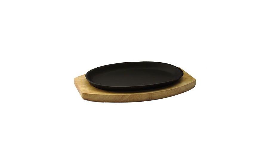 Сковорода порц. 27*18 см. чугун. овальная на дерев. подставке /1/5/