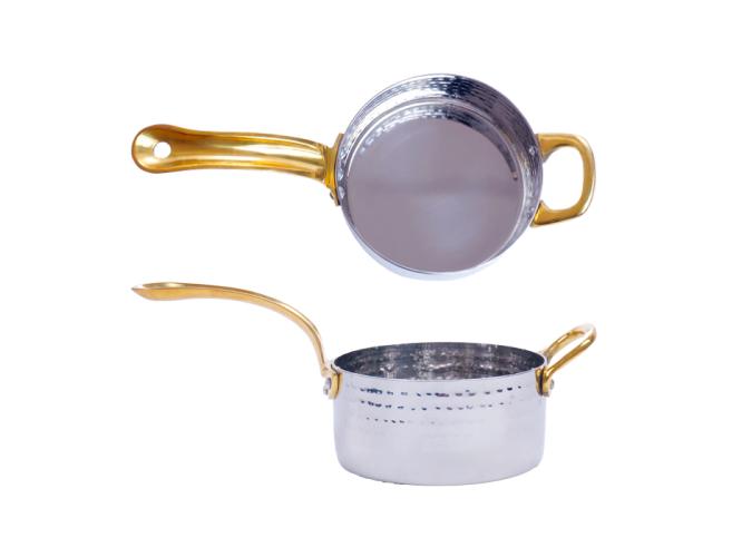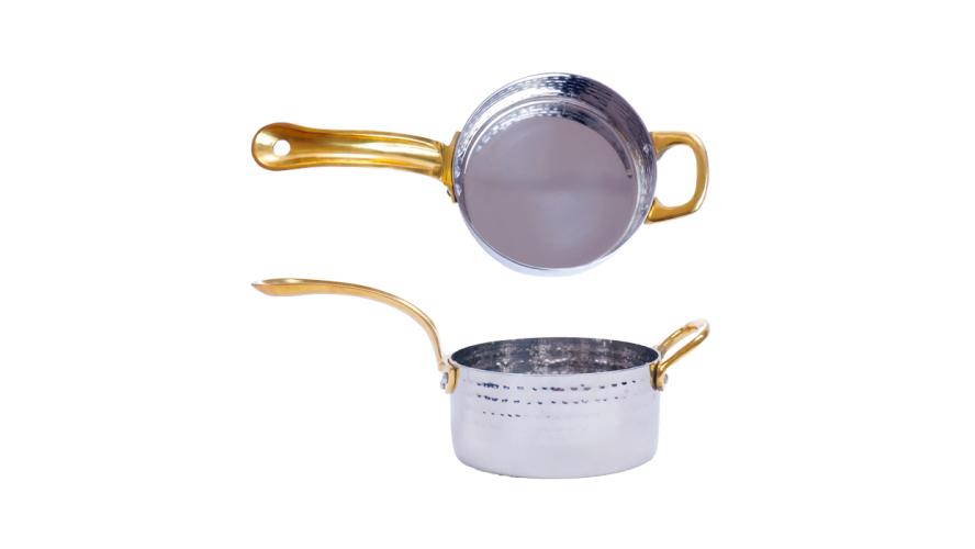 Сковорода порц. d=10,5 см. h=5 см. 0,45 л. нерж. глубокая с 2 ручками латунь MGsteel /1/36/ АКЦИЯ