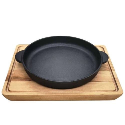 Сковорода порц. d=14 см. h=2,5 см. 0,37 л. чугун. с 2 ручками на дерев. подставке /1/12/