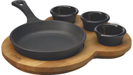 Сковорода порц. d=16 см. h=3 см. 0,39 л. чугун. на дерев. подставке LAVA /1/